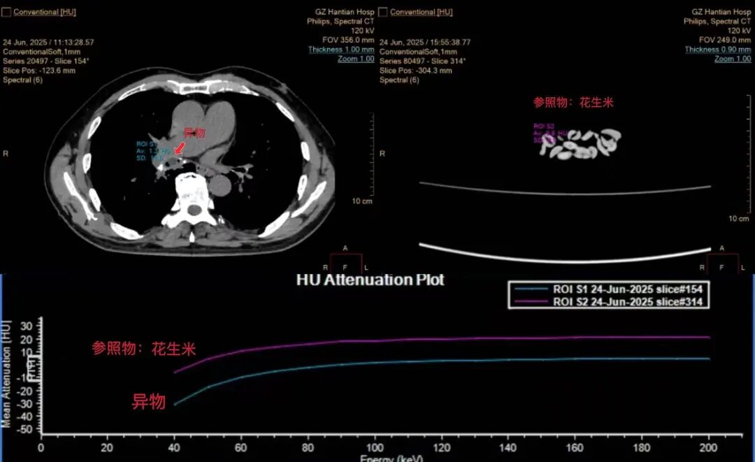 近日,73岁的杨先生(化名)因呼吸困难紧急就诊于我院呼吸与危重症医学科,经接诊医生仔细询问病史后,高度怀疑患者支气管存在异物(花生米)堵塞。因当时情况十分危急,考虑到普通CT/X光定位模糊及辨识度较差等局限,接诊医生立即决定采用能谱CT精准判断异物种类及堵塞位置,最后结合支气管镜手术成功取出异物。 能谱CT如何大显身手 两大核心优势助力精准诊疗 针对支气管异物堵塞,传统检查手段存在定位模糊、成分辨识不清等局限,可能会存在误诊、漏诊的情况。能谱CT相当于为医生配备了"透视眼"与"成分分析仪",能够精准判断异物所在位置及种类。 优势一: 精准定位——给手术装"导航" 能谱CT的"高清细节+多维视角",让医生对异物情况了如指掌: 超高清"立体透视":可生成厚度小于1毫米的薄层图像,细支气管内花生米的大小、形状均能清晰呈现。 多维度全视角观察:通过三维重建技术,医生可从冠状位、矢状位等任意角度获取图像,如同深入患者体内,精准掌握异物的位置及其与周围血管的毗邻关系。 全面评估周围组织状态:可同步检测异物是否引发炎症、水肿或早期脓肿,为术前风险预判提供依据。 有了这些信息,医生做支气管镜手术时路径更准、时间更短,患者少遭罪,并发症风险也大大降低。 优势二: 成分分析——给异物"验明正身" 这才是能谱CT的"独门绝技"!它不仅能"拍照",还能做"成分鉴定": 识别"物质指纹":不同物质(如花生、塑料、骨头、矿物质等)对X射线的吸收特性存在差异,能谱CT可精准识别这些"指纹"——例如,花生主要富含油脂和蛋白质、碳水化合物等,其特征尤为显著。 基物质"解码":通过脂/水基图等特殊图像,能谱CT可将图像中每个像素点解析为脂肪、蛋白质等基础物质的含量。花生的油脂成分在脂/水基图中会清晰显示,与肌肉、血块等组织明确区分。 确认"身份":当异物的能谱曲线与花生特征高度吻合时,即可精准判定为花生或同类油性植物异物,有效降低误诊率。 这种从"形态观察"到"成分辨识"的技术突破,使能谱CT在肿瘤诊疗、淋巴结鉴别等领域展现出显著优势,可通过组织"指纹"精准区分肿瘤类型,借助碘图分析组织血流状况,还能有效鉴别新旧血栓...... 能谱CT通过物质同源分析,实现了从形态学到成分定量的跨越,其“精准定位”和“物质同源分析”的卓越能力,如同为医生配备了“透视眼”和“成分分析仪”,尤其在肿瘤诊疗中,帮助医生“追踪根源”、制定精准治疗方案,是现代影像学的主要突破,其价值不仅在于诊断准确性的提升,更推动了个性化医疗的发展。 贵州航天医院 医学影像科专家简介 余 雷 超声、影像党支部书记,医学影像科主任,主任医师 专业擅长:从事医学影像工作30余年,在CT、MRI诊断方面经验丰富,对疑难、复杂病例有较强的综合影像诊断能力。 曾于上海市第六人民医院和第四军医大学进修学习。以第一作者发表学术论文十余篇,省级科研结题一项。现任贵州省医学会影像技术学分会委员,贵州省非公医疗机构医学影像专委会常委,遵义市医学会放射学分会常委,遵义市民营医疗机构医学影像专委会副主任委员。 吴德生 中共党员,医学影像科副主任,副主任医师 遵义市医学会放射学分会第一、二届委员,遵义市中西医结合学会委员,遵义市结核病诊疗医疗质量控制中心委员,遵义医药高等专科学校兼职副教授。 专业擅长:胸腹部CT及MRI影像诊断,主要从事肺结核、肺结节MDT影像诊断,胃肠道肿瘤诊断,尤其是结直肠癌TNM分期诊断。 贵州航天医院医学影像科简介 基本情况 贵州航天医院医学影像科是集医疗、教学、科研为一体的现代化科室。科室设备先进,技术力量雄厚,经验丰富,人员结构合理,已全面实现数字化,2023年获批遵义市重点专科建设科室。科室业务覆盖普放、CT、MRI检查诊断,2024年引进贵州省首台飞利浦256排光谱CT。科室现有医技护等人员37人,副高级以上职称9人。是遵义医科大学、遵义医药高等专科学校、黔南民族医学专科学校、毕节医学专科学校等院校实习基地。科室为贵州省医学影像结果互认单位,与县级、乡镇及民营医院等建立了专科联盟及医联体,开展了远程影像诊断和技术对口帮扶工作,承担遵义市第二城市医疗集团影像中心建设工作。 专科特色 (一)光谱CT成像技术 应用范围:在心血管、肿瘤、神经等系统的疾病诊断方面有其独特的价值,能够发现隐匿性肿瘤病灶,利用光谱曲线、碘定量测量等,可以分析肿瘤的良恶性,多发病灶的同源性;还能显示心肌缺血灶,对血管斑块进行定量定性分析等等。 (二)胸痛CT血管联合成像技术 应用范围:能够同时进行冠状动脉、肺动脉和胸主动脉成像,诊断冠心病、肺动脉栓塞、主动脉夹层等急危病变。 (三)CT左心房+肺静脉成像技术 应用范围:能在心房颤动术前提供左心房和肺静脉的解剖细节、肺静脉远端分支变异以及左房和食管周边组织之间的关系等很多有价值的信息,从而指导房颤射频消融的顺利进行。 (四)乳腺肿瘤MRI扫描TIC曲线分析 应用范围:对乳房肿瘤、结节的良恶性程度进行分析。 (五)颅脑MRI及CT灌注成像 应用范围:诊断急性脑卒中区分核心梗死区和半暗区,脑肿瘤,烟雾病Alzheimer病,脑供血不足等颅脑血管及脑组织异常引起的疾病。