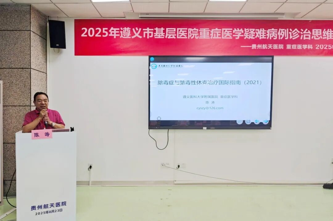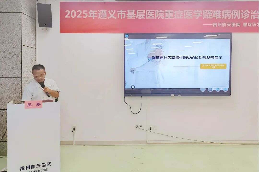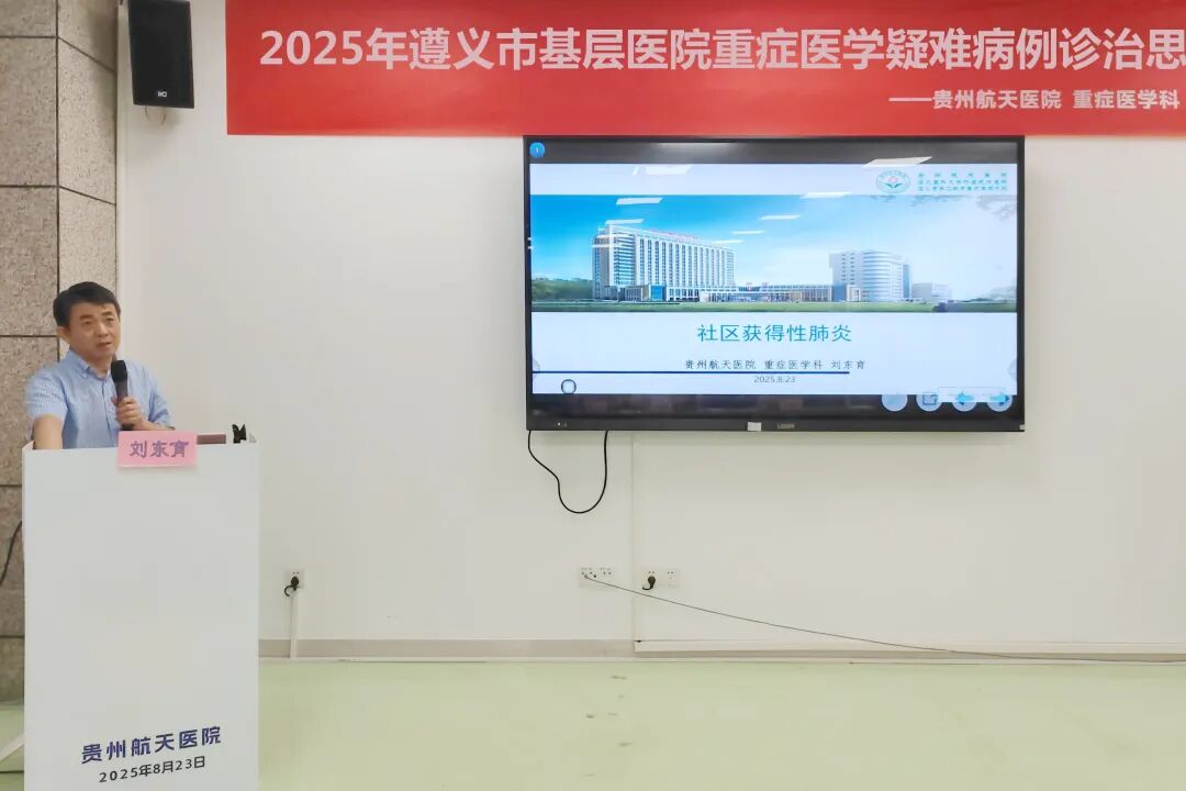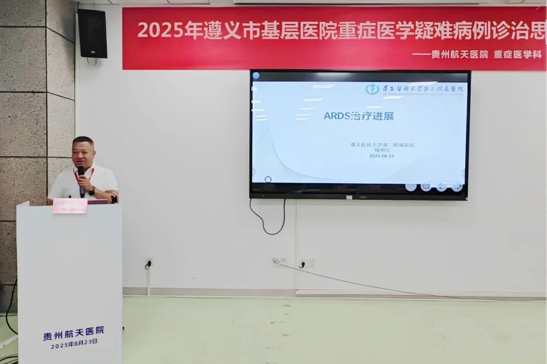 为进一步推动遵义市基层医院重症医学诊疗水平提升,促进医疗资源下沉,2025年8月23日,遵义市第二城市医疗集团总院(贵州航天医院)组织召开“2025年遵义市基层医院重症医学疑难病例诊治思维培训班”,通过系统化、专业化的学术交流,增强基层医务人员在重症疑难病例方面的诊治能力,更好地服务广大群众。 特邀遵义医科大学第一附属医院陈涛教授,遵义医科大学第二附属医院钱明江教授,贵州航天医院刘东育教授、吴英武教授、王磊教授等遵义市重症医学专家进行交流分享;贵州航天医院党委委员、副院长蒋婷出席会议并致辞,贵州航天医院重症医学科全体医护人员,遵义市第二城市医疗集团成员单位有关医务人员参训。 贵州航天医院党委委员、副院长蒋婷致辞 会议内容紧扣重症医学临床实践,围绕脓毒症、ARDS(急性呼吸窘迫综合征)、社区获得性肺炎等重症诊治常见问题进行了分享与探讨,内容实用、案例典型,获得参训人员一致好评。 遵义医科大学第一附属医院陈涛教授分享《脓毒症与脓毒性休克治疗国际指南(2021)》 遵义医科大学第二附属医院钱明江教授分享《ARDS治疗进展》 贵州航天医院刘东育教授分享《社区获得性肺炎》 贵州航天医院吴英武教授分享《疑难病例讨论》 贵州航天医院王磊教授分享《一例重症社区获得性肺炎的诊治思辨与启示》 通过此次培训,不仅为基层医务人员提供了宝贵的学习平台,也进一步强化了医疗集团内部的协作机制,推动优质医疗资源向基层延伸。未来,贵州航天医院将继续发挥总院的带头作用,定期开展各类专业培训和学术交流,助力遵义市基层医疗水平持续提升,为保障人民群众健康贡献力量。 贵州航天医院 重症医学科专家团队 刘东育 中共党员,重症医学科主任,主任医师 专业擅长:从事重症医学领域多年,擅长急危重症的各种抢救,有创呼吸机、无创呼吸机及CRRT的使用,对重症创伤及休克、急性重症胰腺炎、心脑血管疾病、各种急性中毒、多器官功能衰竭、重症肺炎及急性呼吸窘迫综合症等疾病的救治具有丰富的临床经验。 遵义市医学会重症医学分会第二届委员会常务委员,遵义市质量控制中心第一届重症医学质量控制中心委员会副主任,发表重症医学专业论文多篇,遵义市医学会第一届器官捐献与移植学分会常务委员。 赵洪伟 民建会员,重症医学科副主任,副主任医师 专业擅长:从事重症医学领域多年,擅长急危重症的各种抢救,有创呼吸机、CRRT的使用,对各种急性中毒、多器官功能衰竭、重症创伤及休克、心脑血管疾病、急性重症胰腺炎及急性呼吸窘迫综合症等疾病的救治具有丰富的临床经验。 贵州省重症医学委员会委员、遵义市重症医学会委员、遵义市医学会重症医学分会委员,贵州省第一批援沪医疗队队员,发表重症医学专业论文多篇。 王 磊 致公党党员,重症医学科副主任医师 专业擅长:从事重症医学多年,擅长急危重症的各种抢救,对急性重症胰腺炎、重症创伤及休克、急性呼吸窘迫综合症等疾病的救治、有创呼吸机的使用,CRRT对各种急性中毒、多器官功能衰竭、脓毒血症等疾病的救治具有丰富的临床经验。 贵州省重症医学委员会委员、遵义市重症医学分会委员、遵义市播州区方舱医院医疗队队员。 吴英武 中共党员,重症医学科副主任医师 专业擅长:擅长各种急危重症的抢救,对脓毒血症、重症创伤及休克、重症胰腺炎、急性呼吸窘迫综合症等疾病的救治及在重症超声对危重症治疗、抢救等方面具有丰富的临床经验。 贵州省第一批援鄂医疗队队员、贵州省重症医学委员会委员、遵义市医学会重症医学分会委员,发明专利3项、发表重症医学专业论文多篇。 贵州航天医院 重症医学科简介 贵州航天医院重症医学科目前共有医护人员27人,其中副高级以上专家5人,开放床位16张,床单元配备先进的医疗桥架和床旁监护系统,心电监护27台、动态血流监测仪23台、有创呼吸机19台、无创呼吸机5台、高流量呼吸机2台、转运呼吸机1台、血气分析仪1台、除颤仪1台、床旁透析机1台、纤支镜1台、无创血流动力学监测仪(USOM)1台、床旁B超机1台,降温毯1台、输液泵10台、微量注射泵74台、空气消毒机2台。 专科特色技术 心脏电转复及除颤术,气管插管术(经鼻气管插管术、经口气管插管术),气管切开术(经皮快速气管切开术、纤支镜引导下经皮快速气管切开术、超声定位纤支镜引导下经皮快速气管切开术),呼吸机的临床应用、心电、血压、脉搏、血氧饱和度监测技术、有创动态血压监测技术,有创动静脉置管术、锁骨下静脉穿刺技术、颈内静脉穿刺术、股静脉穿刺术、腋静脉穿刺置管术、血液净化临时血管通路的建立、鼻空肠置入术,跨肺压指导ARDS通气患者PEEP滴定应用,床旁超声测量视神经鞘直径评估颅内压,重症肺部超声评分在COPD患者中治疗效果应用,重症膈肌超声运动评估在机械通气患者撤机拔管中的应用,床旁超声测量下腔静脉呼吸变异指数在脓毒性休克机械通气患者容量反应性评估中应用价值。 诊疗范围 (一)急性、可逆、已经危及生命的脏器功能不全,经过严密监测和加强治疗短期内可能得到康复的患者。 (二)存在各种高危因素,具有潜在生命危险,经过严格监护和有效治疗可能减少死亡风险的患者。 (三)在慢性脏器功能不全的基础上,出现急性加重且已危及生命,经过严密监测