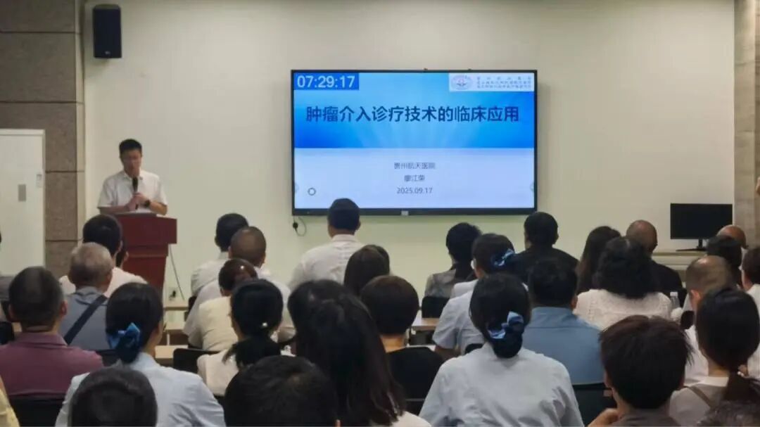 9月17日,贵州航天医院第77次晨读会由我院国务院政府特殊津贴专家、二级教授、呼吸与危重症医学科学科带头人廖江荣作学术交流,他以“肿瘤介入诊疗技术的临床应用”为题,全面讲解了经皮穿刺活检、热消融(如微波与射频)、冷冻消融(如氩氦刀)、放射性粒子植入及血管介入栓塞化疗等多种肿瘤微创诊疗技术,还结合实际病例与影像图文,直观展示了各项技术的临床应用场景;同时着重强调了多学科诊疗(MDT)模式的核心价值,积极推动肿瘤精准诊疗水平与患者就医获得感提升。 呼吸与危重症医学科 学科带头人 廖江荣 国务院政府特殊津贴专家 呼吸与危重症医学科 学科带头人 二级教授 硕士研究生导师 主任医师 学术任职: 亚洲冷冻治疗学会副主席 中国医药教育协会介入微创专业委员会呼吸分会副主任委员 中国防痨协会超声专业委员会副主任委员 中国抗癌协会肿瘤微创治疗专业委员会常务委员 中国防痨协会多学科诊疗专业委员会常务委员 中国医疗保健国际交流促进会结核病学分会常务委员 第一届中国人体健康科技促进会呼吸介入专业委员会常务委员 中国抗癌协会第一届肿瘤组织间植入治疗专业委员会常务委员 西部呼吸介入联盟副理事长 贵州省医学会呼吸病学分会第六届委员会副主任委员 贵州省中西医结合呼吸专业委员会副主任委员 贵州省医学会结核病分会常务委员 遵义市呼吸内科专业医疗质控中心主任委员 遵义市中西医结合学会理事长 专业擅长: 呼吸系统(肺)疑难病的诊断及危重病的抢救,呼吸系统(肺)感染性、疑难性疾病介入快速诊断(ROSE),尤其在肺癌、肺小结节早期诊断,肺癌微创综合靶向治疗,难治性、复治性、重症肺结核诊疗,硬质支气管下复杂性气道狭窄诊治,纤支镜介入治疗气道肿瘤、结核、气道狭窄(球囊扩张、支架植入、高频电刀、氩气刀、冷冻、灌洗、注药、微波消融),间质性肺疾病的诊疗上具有极高水平;带领团队勇于创新,在贵州省率先开展多项新技术、新疗法,如CT引导下及纤支镜下I125粒子植入及CT引导下微波、冷冻消融介入治疗肺癌等多项新技术,带动了贵州省肺部疾病的介入治疗水平提高。 贵州航天医院简介 贵州航天医院位于红城遵义市中心地段大连路615号,历经五十余年的峥嵘岁月,已发展为集医疗、急救、预防、保健、科研、教学为一体的市属三级甲等综合医院。医院始于三线建设,由原航天部〇六一基地3417、3427医院合并而成,2019年移交遵义市人民政府管理。是遵义医科大学附属航天医院、遵义市第二城市医疗集团总院。 医院占地面积4万平方米,总建筑面积10.3万平方米,编制床位1200张,设有临床、医技、行政职能科室共63个。现有职工1145人,国务院特殊津贴专家1人,二级教授1人,硕士研究生导师2人,贵州省千层次人才1人,遵义市15851二层次人才1人,博士、硕士145人(含在读),高级职称以上210人。 医院现有2个国家卫健委能力建设和继续教育建设中心〔肿瘤微创介入(肺癌方向)和神经外科〕,1个省级重点学科(呼吸与危重症医学科),7个省级重点专科(呼吸与危重症医学科、神经内科、骨科、泌尿外科、急诊科、消化内科、结核病科),2个市级重点学科,10个市级重点专科。是亚洲冷冻治疗学会常务理事单位、中国人体健康科技促进会首批呼吸介入技术培训基地、遵义市呼吸内科专业医疗质量控制中心、遵义市呼吸疾病临床医学中心、遵义市骨科临床医学中心、遵义市肺癌与肺小结节早期诊断精准医学重点实验室、遵义市城市检测基地。 呼吸与危重症医学科开展的AI机器人辅助冷、热消融技术治疗早期肺癌、高危肺结节,经气管镜技术治疗气道肿瘤、结核、气道狭窄等,使我院肺部疾病诊疗技术迈入国内先进水平。泌尿外科开展的腹腔镜下膀胱癌和前列腺癌根治术走在贵州省前列。消化内科在脂肪肝、肝纤维化、肝硬化无创诊断技术和胃肠动力疾病全程规范管理达到国内先进水平。医学检验科结核病诊断技术水平已居于国内前列。心血管内科特色开展冠脉复杂病变、结构性心脏病等优势介入手术,神经内科、骨科、急诊科、心胸外科等重点专科诊疗水平已居于全市前列。近年来,医院科研教学能力显著提升,三年内共承担省科技厅、省卫健委等科研项目73项,发表核心期刊11篇,SCI 6篇,省级259篇。 医院以遵义市第二城市医疗集团为依托,按照“一院多区”模式,实现双向转诊汇川区域全覆盖,着力打造“心电一张网”、继发性高血压筛查等项目,以慢性病、多发病为切入点,推动优质医疗资源下沉。聚焦公立医院改革与高质量发展示范项目,以呼吸与危重症医学科等优势学科为引领,积极推进医联体、专科联盟建设,带动区域内基层技术服务能力提升。 end
