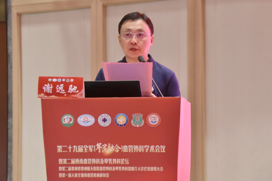9月28日,由北京慢性病防治与健康教育研究会、遵义市中西医结合学会主办,贵州航天医院承办,同济大学附属上海市第四人民医院、空军军医大学唐都医院、空军军医大学西京医院协办的第二十九届全军(军民融合)血管外科学术会议暨第二届西南血管外科及甲乳外科论坛暨第二届贵州省贵州航天医院血管外科及甲乳外科微创介入诊疗培训班大会暨第一届人体全循环血管疾病研讨会在遵义市圆满举办。 本次盛会聚焦血管外科与甲乳外科领域,旨在通过深度交流临床诊疗新策略与学术研究新成果,搭建一个引领发展的思想平台,从而赋能临床实践,共同推动相关疾病防治事业的进步与创新。 开幕式 大会开幕式上,我国腔内血管外科学奠基人、领路人、著名血管外科专家、同济大学附属上海市第四人民医院景在平教授(大会主席),中国医科大学外科学学术带头人、“国之名医”、中国医科大学第一附属医院辛世杰教授(大会共同主席),遵义市卫生健康局党委委员、市计生协专职副会长谢远驰,贵州航天医院党委书记杨军出席并致辞;大会主席、贵州航天医院院长廖江荣主持开幕式。 景在平教授致辞 辛世杰教授致辞 谢远驰致辞 杨军致辞 廖江荣主持 会旗交接 中山大学肿瘤防治中心张福君教授(大会共同主席),北京大学人民医院张小明教授(大会共同主席),空军军医大学唐都医院赵华栋教授,中国人民解放军火箭军总医院刘傲飞教授,中国人民解放军970医院赵堂海教授,空军军医大学西京医院袁时芳教授,上海市第一人民医院冯睿教授,同济大学附属上海市第四人民医院裴轶飞教授、庄郁峰教授、窦宁教授、张建伟教授、陈天佑教授、李亚杰教授、马皓钰教授、张恒教授,浦东新区光明中医医院王宏飞教授,江西省人民医院罗仕华教授,青岛大学附属医院郭明金教授,湖南省人民医院颜鹏教授,贵州中医药大学第二附属医院赵华教授,遵义医科大学附属医院张文夺教授、李涛浪教授,遵义医科大学第二附属医院曾峰教授、蔡铮教授、何思思教授,遵义市第一人民医院姜黔峰教授、瞿锐教授,贵黔国际总医院杨新华教授、陈建清教授、刘皓希教授,贵州航天医院方军教授、付瑞敏教授、张传瑜教授等专家参加开幕式,为大会注入了强大的学术力量。 学术交流 开幕式结束后,来自北京市、上海市、广东省、江西省、山东省、贵州省等地的30余位专家大咖进行了学术分享,共同探讨当前血管医学等领域的前沿研究与临床应用,推动诊疗技术创新与发展。 主会场 同济大学附属上海市第四人民医院景在平教授分享《主动脉夹层腔内微创治疗的新进展》 中国医科大学第一附属医院辛世杰教授分享《开放手术在血管外科的存在价值》 中山大学肿瘤防治中心张福君教授分享《核技术在微创介入材料研发中的应用》 上海市第一人民医院冯睿教授分享《主动脉夹层远端破口可降解精准治疗》 同济大学附属上海市第四人民医院裴轶飞教授分享《主动脉弓上原位开窗技术分析》 同济大学附属上海市第四人民医院庄郁峰教授分享《景式学科管理新模式》 贵州航天医院廖江荣教授分享《氩氦刀经皮冷冻消融治疗临床应用》 贵州航天医院方军教授分享《腹主动脉腔内隔绝术中应注意的几个问题》 中国人民解放军火箭军总医院刘傲飞教授分享《慢性颈动脉长段闭塞复合手术开通策略》 浦东新区光明中医医院王宏飞教授分享《肠系膜上动脉栓塞2例》 同济大学附属上海市第四人民医院窦宁教授分享《远端入路leriche综合症腔内微创治疗》 江西省人民医院罗仕华教授分享《结肠癌肝转移血管腔内转化治疗》 遵义医科大学附属医院张文夺教授分享《完全腔内介入治疗下肢动脉栓塞症》 遵义市第一人民医院姜黔峰教授分享《冠状动脉瘘介入治疗及病案分享》 同济大学附属上海市第四人民医院陈天佑教授分享《血管衰老中的炎症微环境动力学》 青岛大学附属医院郭明金教授分享《破裂腹主动脉瘤的救治》 同济大学附属上海市第四人民医院李亚杰教授分享《零距离、心服务》 同济大学附属上海市第四人民医院马皓钰教授分享《智能调度赋能的床位管理系统研发及转化应用》 同济大学附属上海市第四人民医院张恒教授分享《基因编辑技术在遗传性主动脉疾病中的应用研究》 分会场 空军军医大学唐都医院赵华栋教授分享《达芬奇机器人经口腔前庭入路甲状腺癌根治术手术体会》 贵黔国际总医院杨新华教授分享《乳腺癌前哨淋巴结活检的临床应用与注意事项》 空军军医大学西京医院袁时芳教授分享《乳腺癌循环肿瘤细胞3D打印:微流控芯片可视化检测研究》 遵义医科大学附属医院李涛浪教授分享《基于乳腺发育的视角看胸肌前假体重建》 遵义市第一人民医院瞿锐教授分享《腔镜甲状腺手术的拓展》 贵州航天医院方军教授分享《甲状腺射频消融术中热点问题分析》 遵义医科大学第二附属医院何思思教授分享《肿瘤免疫治疗严重不良反应研究进展》 在学术交流中,还设置了“交流讨论”环节,众多专家从各自专业角度,对相关主题进行深入探讨和交流,碰撞出思维的火花,为大家带来全方位、多层次的学术盛宴。 本次盛会不仅为血管外科与甲乳外科领域的专家学者搭建了高质量的交流平台,更通过区域联动的方式,凝聚共识、共享成果,有力推动了学科协同发