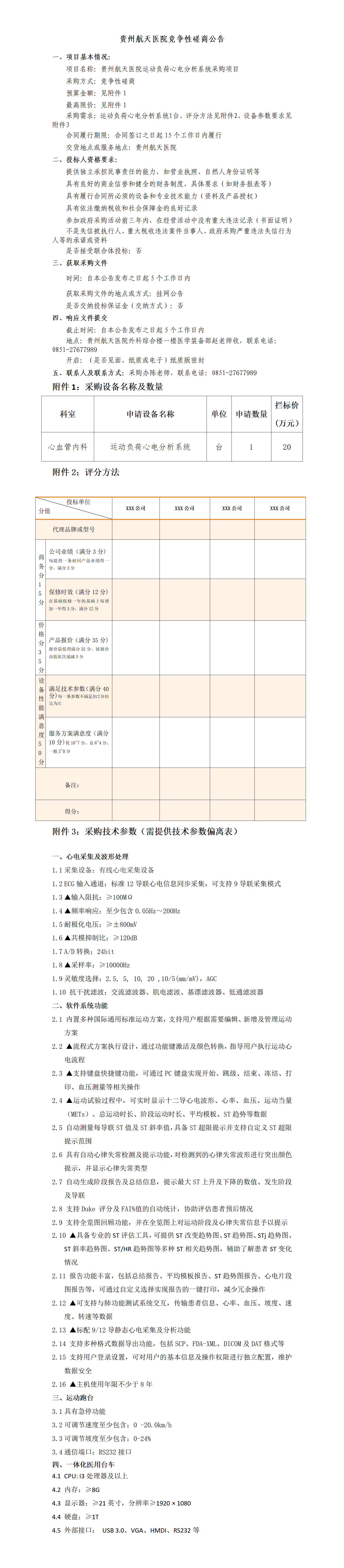 贵州航天医院运动负荷心电分析系统采购项目竞争性磋商公告