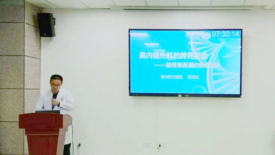 10月29日,贵州航天医院第81次晨读会由我院耳鼻咽喉科医师田茂利作学术交流,他以“鼻内镜外科的跨界征途——脑脊液鼻漏的微创修补”为题,详细讲解了脑脊液鼻漏的概述与发生机制、多学科融合的背景意义、经鼻手术策略、颅底重建关键技术、具体手术步骤及术后处理要点,系统梳理了该领域的临床处理思路,为鼻内镜外科技术的实践与应用带来了新的启发。 耳鼻咽喉科专家简介 张光进 中共党员,耳鼻咽喉科主任,副主任医师 临床擅长:对耳鼻喉头颈常见病的诊治具有丰富的临床经验,擅长鼻内镜、耳内镜、耳显微、头颈咽喉部肿瘤及眩晕手法复位等的诊疗。 曾先后前往第三军医大学西南医院、复旦大学耳鼻喉科医院、上海新华医院及北京友谊医院进修学习;遵义市医学会常务委员;主持及参与级科研课题2项,发表专业论文10余篇。 陈维信 九三学社社员,耳鼻咽喉科主任医师 临床擅长:对耳鼻咽喉科常见疾病的诊治具有丰富的临床经验,擅长耳、鼻、喉及头颈部位的手术。 曾先后前往上海交通大学附属仁济医院耳鼻喉-头颈外科、北京大学人民医院耳鼻喉-头颈外科参加鼻内镜外科进修学习。中国睡眠研究会委员,贵州省医学会耳鼻喉-头颈外科学分会委员,贵州省耳鼻喉-头颈外科学会理事,贵州省医学会变态反应学分会委员,贵州省防聋治聋技术指导组专家,遵义市耳鼻喉科分会副主任委员,遵义市医疗事故鉴定专家库成员;主持省部级科研课题2项,发表专业论文20余篇。 秦 晋 耳鼻咽喉科副主任医师 临床擅长:对耳鼻咽喉科常见疾病的诊治具有丰富的临床经验,擅长耳、鼻、喉及头颈部位的手术。 遵义市医学会常务委员;曾先后在第三军医大学西南医院、湖南湘雅鼻颅底培训班进修学习。 田茂利 耳鼻咽喉科主治医师 临床擅长:耳鼻咽喉头颈内镜外科手术,尤其擅长鼻腔鼻窦、鼻颅底内镜外科手术,对耳鼻咽喉科常见病、多发病有丰富诊治经验。 2012年毕业于遵义医学院眼耳鼻咽喉专业,毕业后一直从事耳鼻咽喉头颈外科临床工作,先后前往首都医科大学附属北京同仁医院、中南大学湘雅医院、北京中日友好医院进修学习。 贵州航天医院 耳鼻咽喉科简介 基本情况 贵州航天医院耳鼻咽喉科拥有一支经验丰富、技术精湛的医疗团队,共有医师9名,其中副高级以上专家5名,医学硕士2名,开放床位20张,拥有德国WOLF鼻窦内窥镜系统、日本奥林巴斯电子喉镜、奥林巴斯电子鼻咽镜、丹麦临床听力监测设备、声导抗仪、听觉诱发电位、耳声发射仪、美国杰西低温等离子治疗仪、杭州好克鼻窦内窥镜系统、鼻动力系统、耳显微镜、耳用电钻、微波治疗仪等设备。 专科特色 (一)耳部疾病 耳内镜下胆脂瘤切除术、III型鼓室成形术+人工听骨链重建术。 (二)鼻部疾病 内镜下鼻息肉切除术、鼻窦功能开放术。 (三)咽喉疾病 内镜下扁桃体、腺样体低温等离子切除术 (四)交叉学科 1.经鼻内镜下眶内肿瘤切除术 2.经鼻内镜下鼻腔泪囊吻合术 诊疗范围 (一)常见耳疾的诊断和治疗:中耳炎、耳聋、耳鸣等。通过各种耳科检查手段,如耳镜检查、听力测试和耳脑干听觉诱发电位检查等,准确诊断患者病情,制定个性化治疗方案。 (二)鼻炎、鼻窦炎、鼻出血等鼻科疾病的诊断和治疗:采用微创技术,如鼻内窥镜检查、低温等离子手术等,为患者提供有效的治疗方案。 (三)喉炎、声带息肉、声带白斑等喉科疾病的诊断和治疗:通过声带电子镜、喉镜等设备,准确判断患者的喉部病变,为患者提供精准的治疗方案。 (四)鼻眼、鼻颅底相关手术。 end