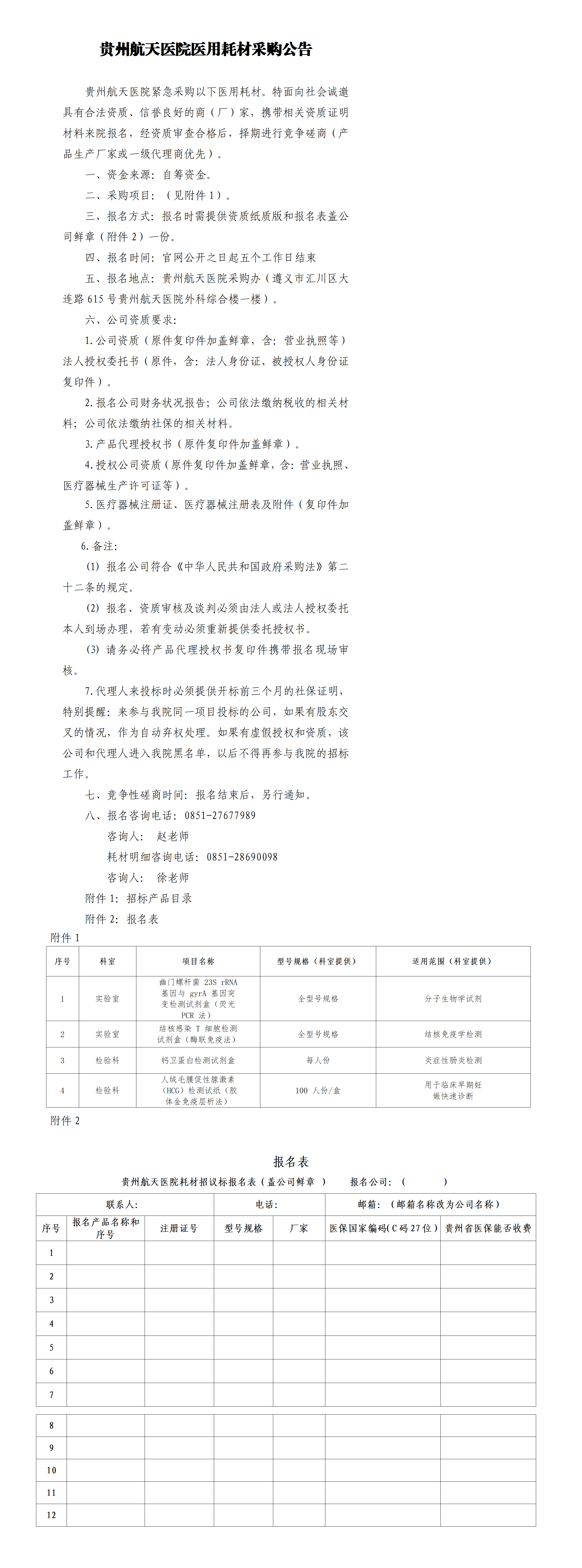 贵州航天医院近期竞争性磋商及单一来源采购结果公示