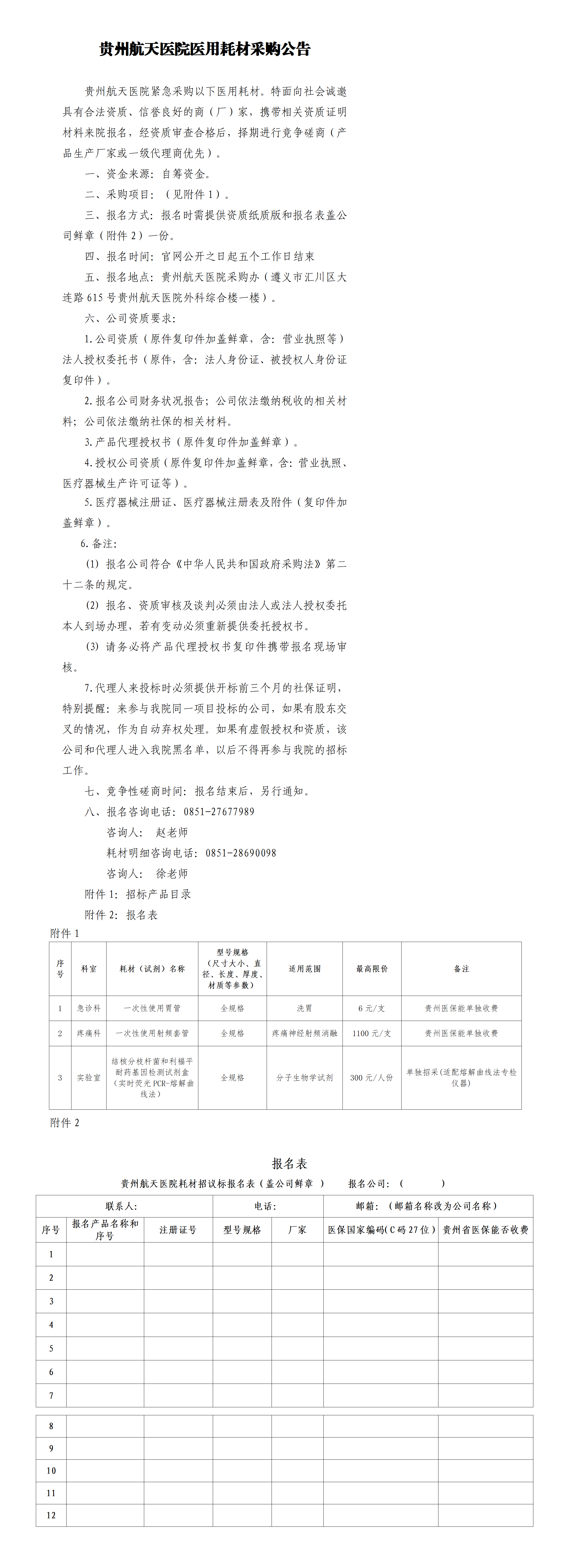 贵州航天医院电子支气管镜维修服务单一来源采购项目公告