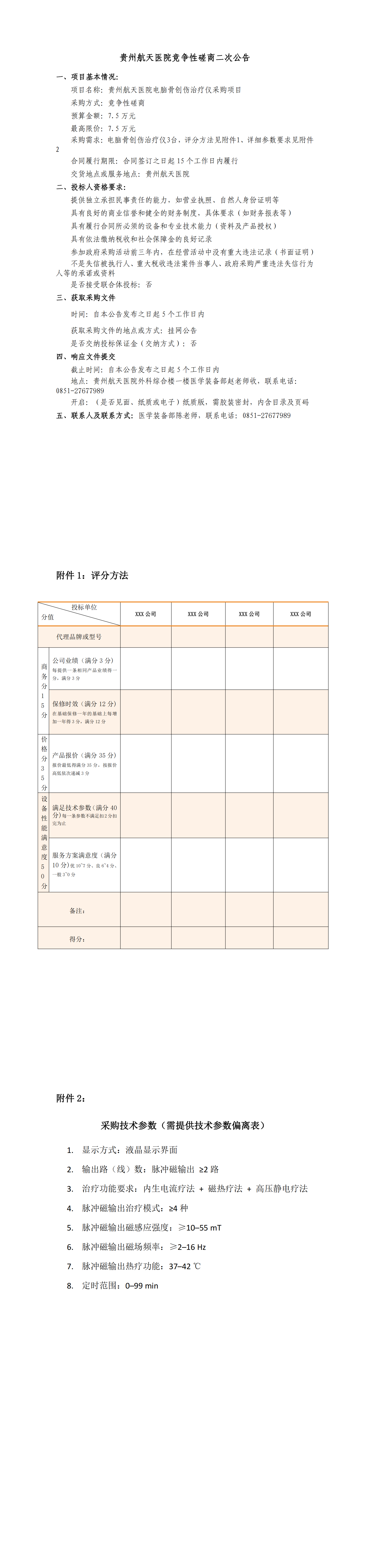 贵州航天医院电脑骨创伤治疗仪采购项目竞争性磋商二次公告
