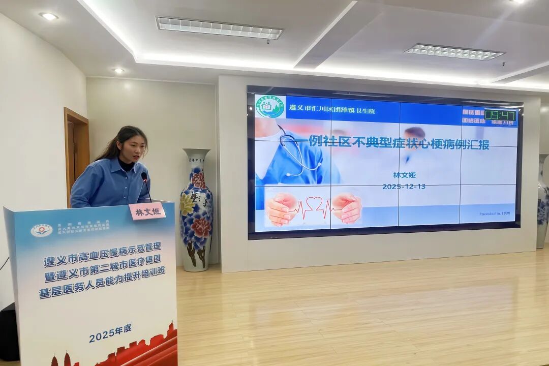为加强基层医疗卫生服务体系建设,提升基层医务人员对高血压等慢性病规范化管理能力,12月13日,遵义市第二城市医疗集团总院(贵州航天医院)圆满举办遵义市高血压慢病示范管理暨基层医务人员能力提升培训班,吸引了来自遵义市各级医疗机构的医务人员参与。遵义市第一人民医院党委副书记、院长姜黔峰,贵州航天医院党委委员、副院长彭亮出席会议并发言。 遵义市第一人民医院 党委副书记、院长姜黔峰发言 贵州航天医院 党委委员、副院长彭亮发言 培训班现场 培训班聚焦高血压慢病管理、心律失常、基层急救能力提升等核心议题展开,内容涵盖心力衰竭、脑卒中溶栓、妊娠期高血压等专题,特邀贵州省人民医院田龙海教授,贵州中医药大学第一附属医院杨君教授,遵义医科大学附属医院的赵然尊教授,遵义医科大学第二附属医院巩亮教授,遵义市第一人民医院姜黔峰教授、涂清鲜教授,贵州茅台医院覃智芳教授及贵州航天医院多位教授分享了最新临床指南与实践经验。 同时,还设置了典型及疑难病例讨论竞赛,通过真实案例讨论,基层医务人员展示了诊断思路、急症处理及慢病管理能力,专家现场点评指导,为与会人员带来了一场系统化、规范化的高血压诊疗领域学术活动,进一步强化了理论与实践的结合。 病例竞赛 此次培训通过专家授课、案例讨论、技能培训等形式,提升了基层对高血压等慢病的首诊识别、急症处置及长期管理能力。未来,医院将持续深化医防融合,加强上下联动,助力遵义市构建“小病在基层、大病到医院、康复回社区”的分级诊疗格局,为健康遵义建设注入新动力。 贵州航天医院 心血管内科专家简介 沈万贵 心内科党支部书记、主任,副主任医师 临床擅长:从事临床工作约33年,对冠心病,高血压病,各种心肌病等疾病的诊治以及内科疑难杂症疾病的诊疗具有丰富诊疗经验,累计实施冠心病、外周血管等疾病的介入手术诊疗过万例。擅长于冠脉复杂病变的介入手术治疗、肾动脉狭窄介入手术、下肢深静脉血栓的介入手术治疗。 贵州省医学会心血管病分会常务委员、贵州省心脏病康复医学会常务委员,遵义市医学会心血管病分会副主任委员,西南高血压病管理委员会常务理事,贵州省冠心病组委员;发表学术论文20余篇。 张羽坤 中共党员,心血管内科副主任,主任医师,硕士研究生 临床擅长:具备心血管疾病心律失常介入(导管消融及植入器械)国家级手术资质,参与各类心脏介入手术6000余例。以第一作者在国内核心期刊发表医学论文10余篇,主持市级科研项目1项。 曾先后前往贵州省人民医院、国家心脏中心北京阜外心血管病医院学习深造(2017年11月至2018年11月参加第二期黔医人才计划并获得优秀学员称号),2022年获得贵州省“第二届最美劳动者”称号。 中国医疗保健国际交流促进会心律与心电分会第三届委员,中国老年医学学会心血管病分会第二届委员会基层委员,贵州省心电生理与起搏分会委员,贵州省中西医结合学会心血管专业委员会委员,遵义医学会心血管病学分会常委,遵义市医学会(第六届)理事会理事,遵义市健康科普专家;是遵义医科大学科技学院及遵义医药高等专科学校兼职教师。 李树刚 中共党员,心血管内科主任医师 临床擅长:具备冠心病介入手术治疗资质,对心内科各种常见病、多发病及急性冠脉综合征疾病具有丰富的临床诊治经验,完成各项冠心病介入治疗6000余台。 毕业于遵义医学院临床医学专业,以第一作者在国内核心期刊发表医学论文数篇,主持并结题市级科研项目1项;遵义市医学会心血管病分会委员,遵义市健康科普专家成员。 刘忠凤 中共党员,心血管内科副主任医师 临床擅长:对结构性心脏病超声心动图的判读及解析、结构性心脏病的诊疗有丰富的临床诊疗经验;擅长心血管常见多发病及难治性心衰的诊治、恶性心律失常的抢救。 遵义市医学会心血管病分会委员,遵义市医学会内分泌暨糖尿病分会委员,遵义市医学会骨质疏松暨骨矿盐疾病学分会委员;曾前往贵州省人民医院超声心动图室、四川大学华西医院超声科进修学习超声图;发表省级期刊数篇,参与结构性心脏病术中超声指导。 李茂春 心血管内科副主任医师 临床擅长:1995年毕业于遵义医学院临床医学系,从事临床工作28年,熟练掌握高血压、冠心病等心血管疾病的诊治及危急重症患者的救治,擅长糖尿病、甲状腺功能亢进、代谢综合征等内分泌代谢性疾病的诊治,在多年的临床工作中对内分泌代谢疾病、心血管疾病的诊治中积累了丰富临床的经验。 贵州省医学会内分泌暨糖尿病学分会第七届委员会甲状腺学组组员,遵义市内分泌暨糖尿病学分会第一届委员会常务委员,贵州省康复医学会骨内科专业委员会遵义地区分会常务委员。多年来在省内外期刊发表论文数十篇。 胡兴丽 心血管内科副主任医师 临床擅长:对心血管及内分泌相关常见疾病的诊治及抢救工作具有丰富的临床经验,擅长心血管及心律失常的介入手术。 2009年毕业于遵义医学院临床医学专业,临床工作10余年,有外出进修 CCU 学习经历,发表论文数篇。云贵川高血压联盟委员。 杨 菊 中共党员,心血管内科副主任医师,硕士研究生 临床擅长:具备心血管疾病冠脉介入手术资质,参与各类冠心病介入手术3000余例。 遵义市医学会心血管病分会委员,多次获得“优秀党员”、“