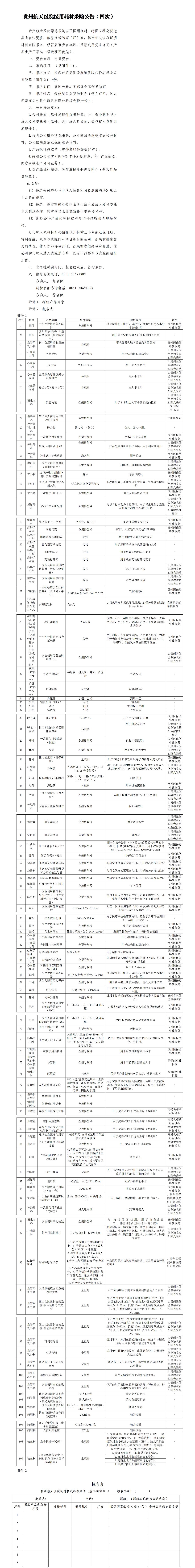 贵州航天医院医用耗材采购公告(四次).doc