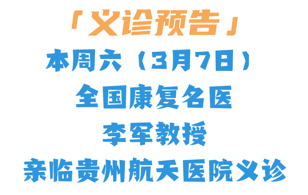 为让遵义市民在家门口就能享受到国内前沿的康复诊疗服务,本周六(3月7日),我院特邀全国知名康复医学专家——昆明医科大学第二附属医院康复医学部李军教授来院义诊,并通过教学查房、疑难病例讨论等形式,为患者提供全方位、全周期的康复诊疗服务。欢迎广大患者前来就诊咨询! 李军教授简介 昆明医科大学第二附属医院 康复医学部副主任 硕士研究生导师 副主任医师 擅长重症康复、心脏康复、疼痛康复、神经康复。参与多个科研课题研究并在国家级核心期刊发表论文5篇,发表SCI论文1篇,主编高校康复专科教材2部。曾多次到香港、北京、上海、南京等多家康复医学机构学习,并于2013年到广东省人民医院心脏康复中心进修学习心脏康复。 现任云南省康复医学会疼痛康复专业委员会副主任委员、云南省康复医学会非公医疗机构康复专业委员会副主任委员、云南省康复医学会理事、云南省医师协会康复医师分会常务委员、云南省康复医学会电诊断专业委员会委员、云南省康复医学会心血管委员会委员。 义诊信息 义诊时间 2026年3月7日(星期六)上午8:00-12:00 义诊地点 贵州航天医院康复医学科(外科综合楼5楼) 义诊对象 如果您或家人存在以下康复问题,本次义诊将是一次难得的评估与咨询机会: ※脑卒中(中风)后遗留的偏瘫、言语不清、吞咽困难等功能障碍。 ※脊髓损伤、周围神经损伤导致的运动及感觉功能丧失。 ※颈椎病、腰椎病引起的颈肩痛、腰腿痛、肢体麻木。 ※各类骨关节术后(如膝关节置换、髋关节置换、骨折术后)的功能恢复不佳、关节僵硬。 ※运动不当造成的肌肉、韧带损伤,慢性疼痛。 ※因年老体弱出现的平衡能力下降、步行困难、生活自理能力减退等问题。 预约方式 电话预约(需提前电话预约,约满即止)。 预约电话:0851-27677437或0851-27677102(工作日上午8:00-12:00,下午14:30-17:30) 就诊提示: 请成功预约的患者在活动当天,携带好所有相关的既往病历、影像检查资料(如X光、CT、MRI片)及出院小结,以便全面、准确地评估病情,并提供个性化的康复指导方案。 李军教授专家工作站已正式落户我院,未来,李军教授及其团队将定期在我院开展诊疗、技术指导与学术交流,为我市患者提供常态化、高水平的康复诊疗服务,真正让大家在家门口就能持续享受到国内前沿的康复医疗资源。 康复医学科专家简介 王静芬 中共党员,康复医学科主任,副主任医师 临床擅长:从事康复及神经系统疾病诊疗工作20余年,擅长神经系统与运动系统疾病的康复治疗及物理疗法。尤其在脑血管疾病(如进展性脑卒中、短暂性脑缺血发作)、神经损伤(颅脑损伤、脊髓损伤)、功能障碍康复(认知、言语、吞咽训练、偏瘫肢体康复)及眩晕、血管性头痛等疾病的诊疗方面具有丰富的临床经验。 遵义市医学会物理医学与康复学分会第一届委员会委员、贵州省中医药学会推拿分会委员会委员、贵州省银质针专业委员会委员;具有贵州省第一届“西医学习中医”资格,先后于重庆医科大学、中国人民解放军陆军军医大学学习神经康复技术,并在贵州省内率先开展急性脑梗死溶栓治疗中TCD检测。 康复医学科简介 基本情况 贵州航天医院康复医学科是集医疗、科研、教学为一体的现代化与传统医学相结合的综合康复学科,建立了康复门诊和康复病房一体化的多维度康复体系;全面引入现代运动康复与智能康复,拥有独立的PT康复训练室、OT康复训练室、ST康复训练室、认知功能康复训练室及平衡功能检查训练系统、减重系统,并采用中医特色疗法相结合的方式,既充分发挥了康复前沿优势,又最大程度提升了康复体验。 康复医学科采用综合康复治疗手段和康复治疗小组工作模式开展系统康复,聚集神经康复、脊髓损伤康复、骨与骨关节康复、神经泌尿康复、重症康复、老年康复和传统医学康复等多个优势技术力量,形成了以“功能评估—康复治疗—效果评价”为基础的康复流程,探索出了一套急性期救治与恢复期康复相结合的深度融合模式。 康复技术 成熟运用多种感觉刺激治疗法、本体感觉神经肌肉促进疗法、经颅磁刺激技术、外骨骼机器人辅助技术、体外冲击波治疗技术,富血小板血浆(PRP)治疗、肉毒毒素注射治疗、CPM机、经颅直流电刺激技术、交流电治疗技术、超声波治疗技术、生物电反馈治疗和干扰电治疗技术、等速肌力训练技术、Brunnstrom技术、BoBath技术、颈腰椎牵引治疗、传统针刺、热敏灸、放血疗法、中医定向透药、推拿等治疗技术。 特色、精品医疗技术 (一)机器人在康复科的应用 应用范围:脑卒中康复、脊髓损伤康复、脑瘫康复、关节置换术后康复、骨折术后康复、平衡与步态训练、认知与运动综合训练。 技术优势:精准性高、个人化强。 (二)悬吊技术 应用范围:肌肉骨骼系统疾病、神经系统疾病、运动员损伤预防与康复、运动功能提升。 技术优势:个性化强、激活核心肌群、减轻关节压力、提高平衡与协调能力、改善神经肌肉控制。 (三)中医定向透药治疗 应用范围:骨伤科疾病、风湿免疫性疾病、软组织损伤、呼吸系统疾病、消化系统疾病、泌尿系统疾病、痛经、慢性盆腔炎。 技术优势:精准性高、个人化强。 (四)经颅磁刺激治疗 应用范围:脑卒中、帕金森病、癫痫、偏头痛、脊髓损伤、周围神经损伤、认知功能障碍、耳鸣。 技