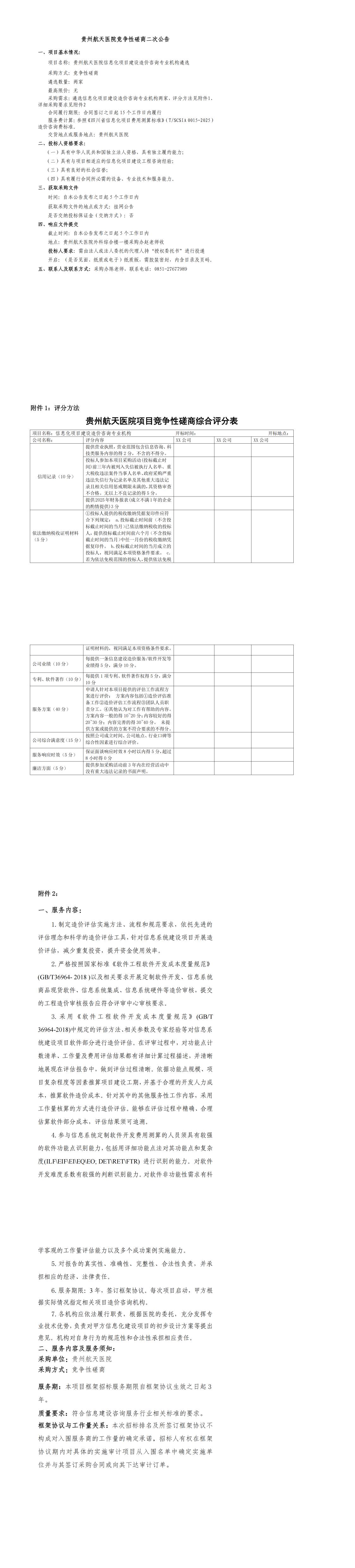 贵州航天医院信息化项目建设造价咨询专业机构遴选竞争性磋商二次公告