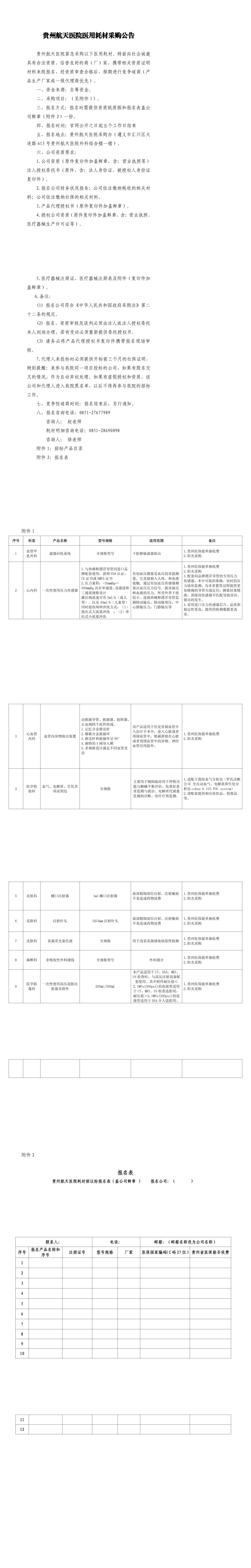 贵州航天医院医用耗材采购公告.doc