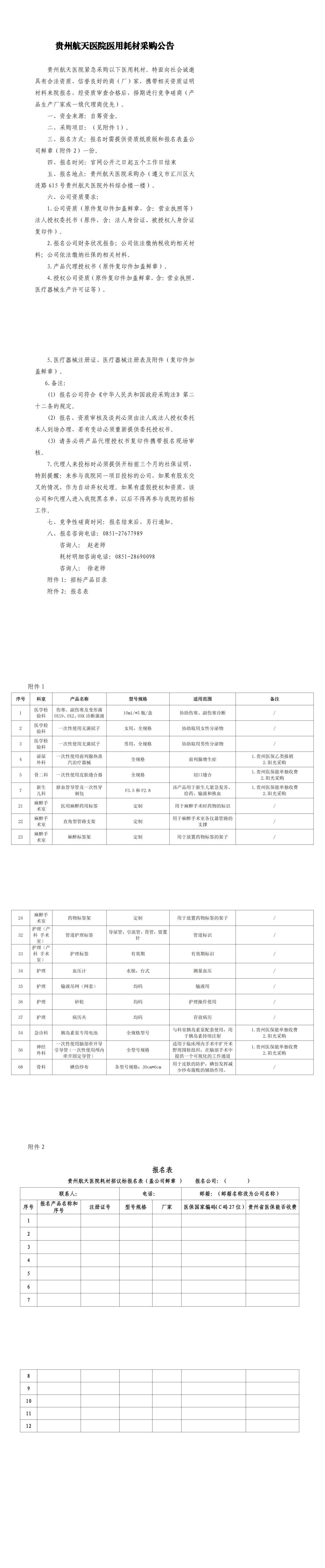 贵州航天医院医用耗材采购公告.doc